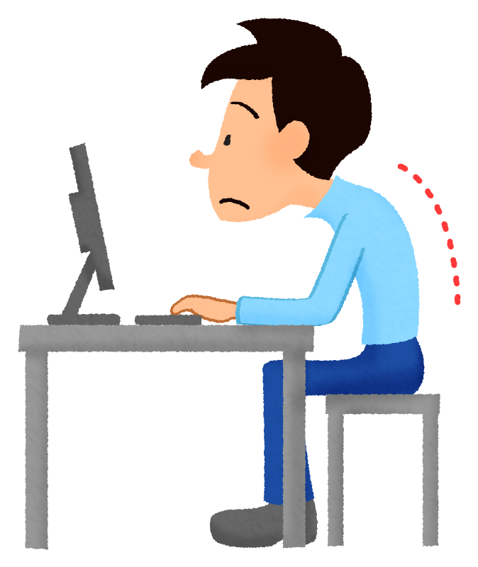 長時間座りっぱなしの状態が続くと、姿勢が崩れやすくなり、首や肩、腰に負担がかかります。まず大切なのは「こまめにリセットすること」です。