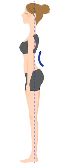 その中でも多いのが「反り腰」による影響です。反り腰の状態では骨盤が前に傾き、