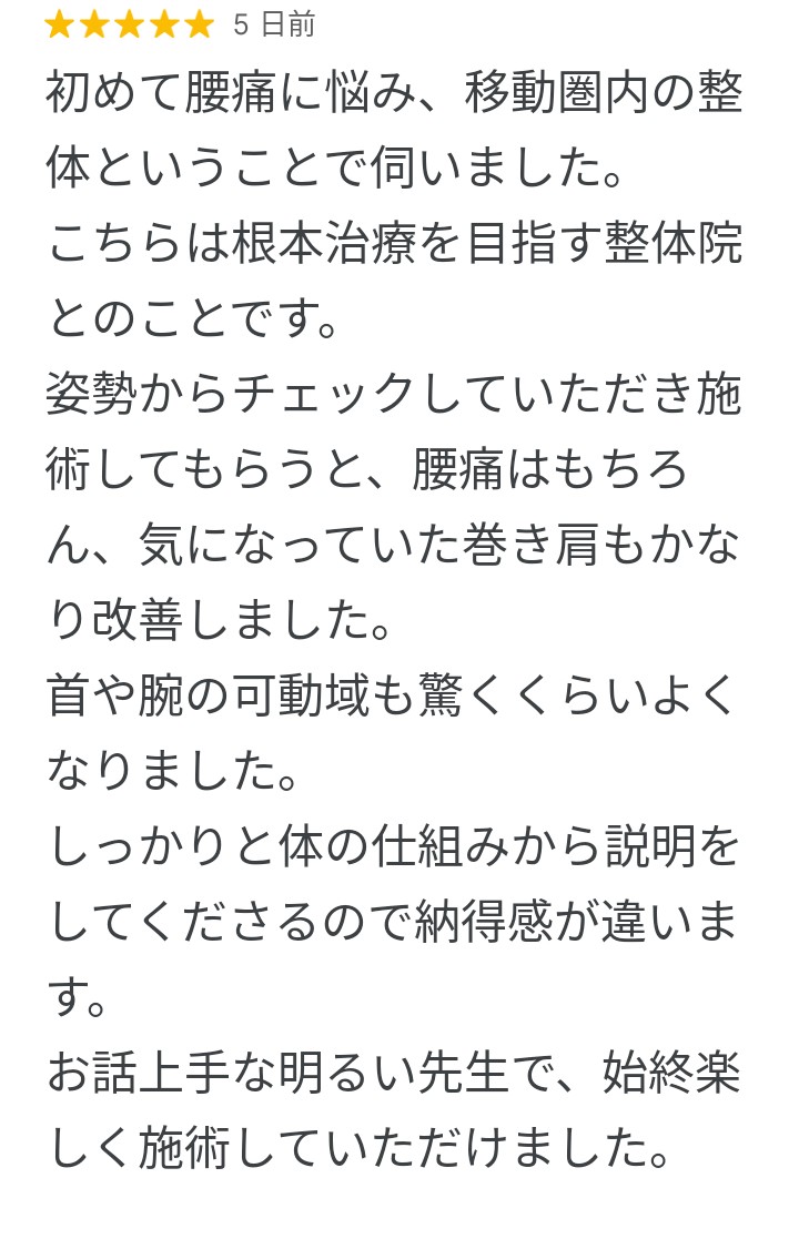 今回は当院に通われている患者様のお声をご紹介したいと思います。