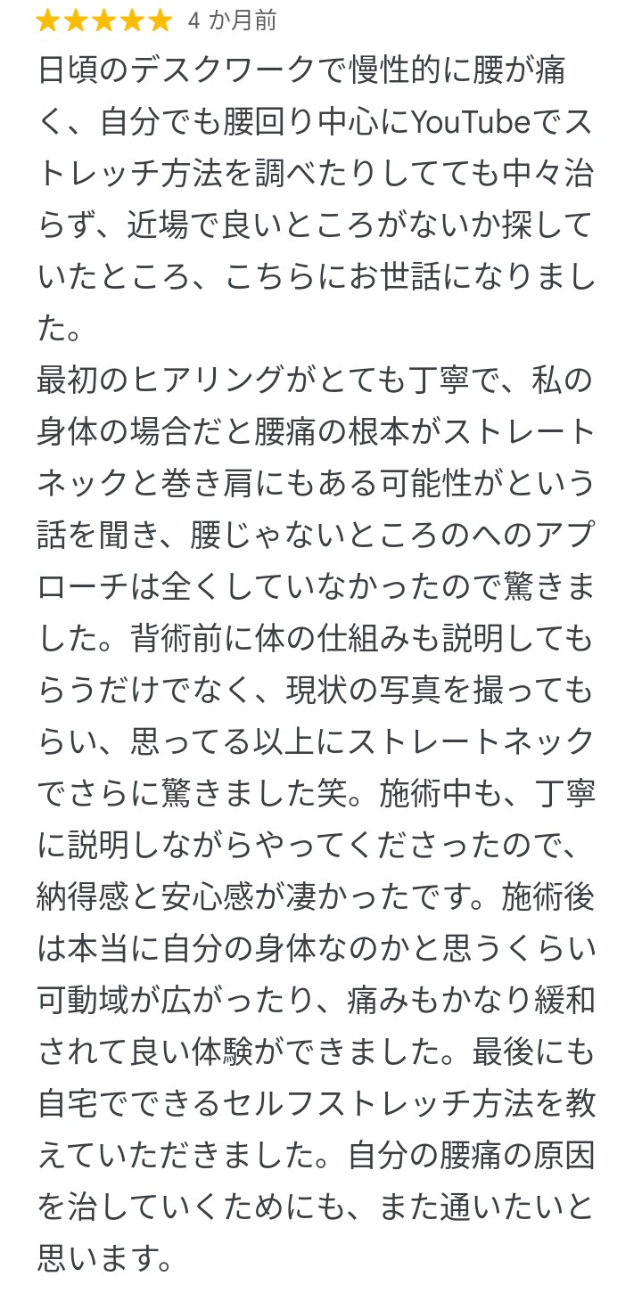 今回は当院に通われている患者様のお声をご紹介したいと思います。