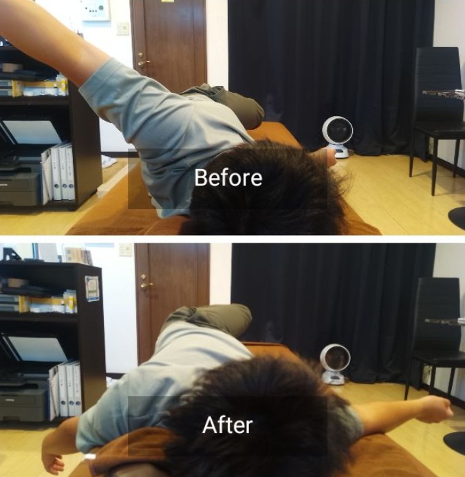 本日のBefore Afterは水平伸展(腕を後に広げる動作)です。