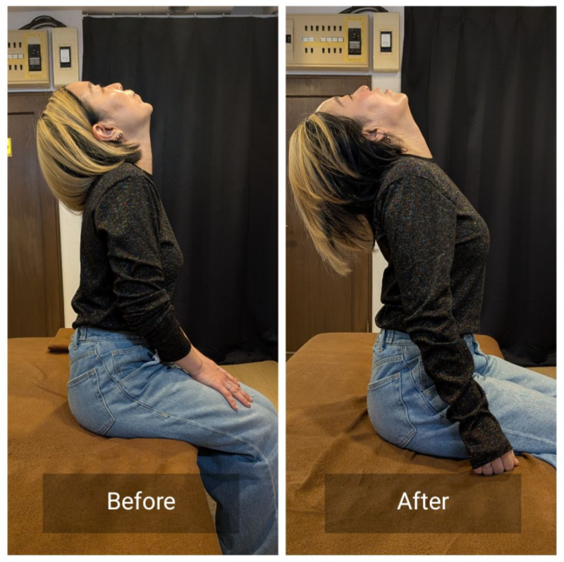 本日は頚椎伸展(首を上にあげる動作)